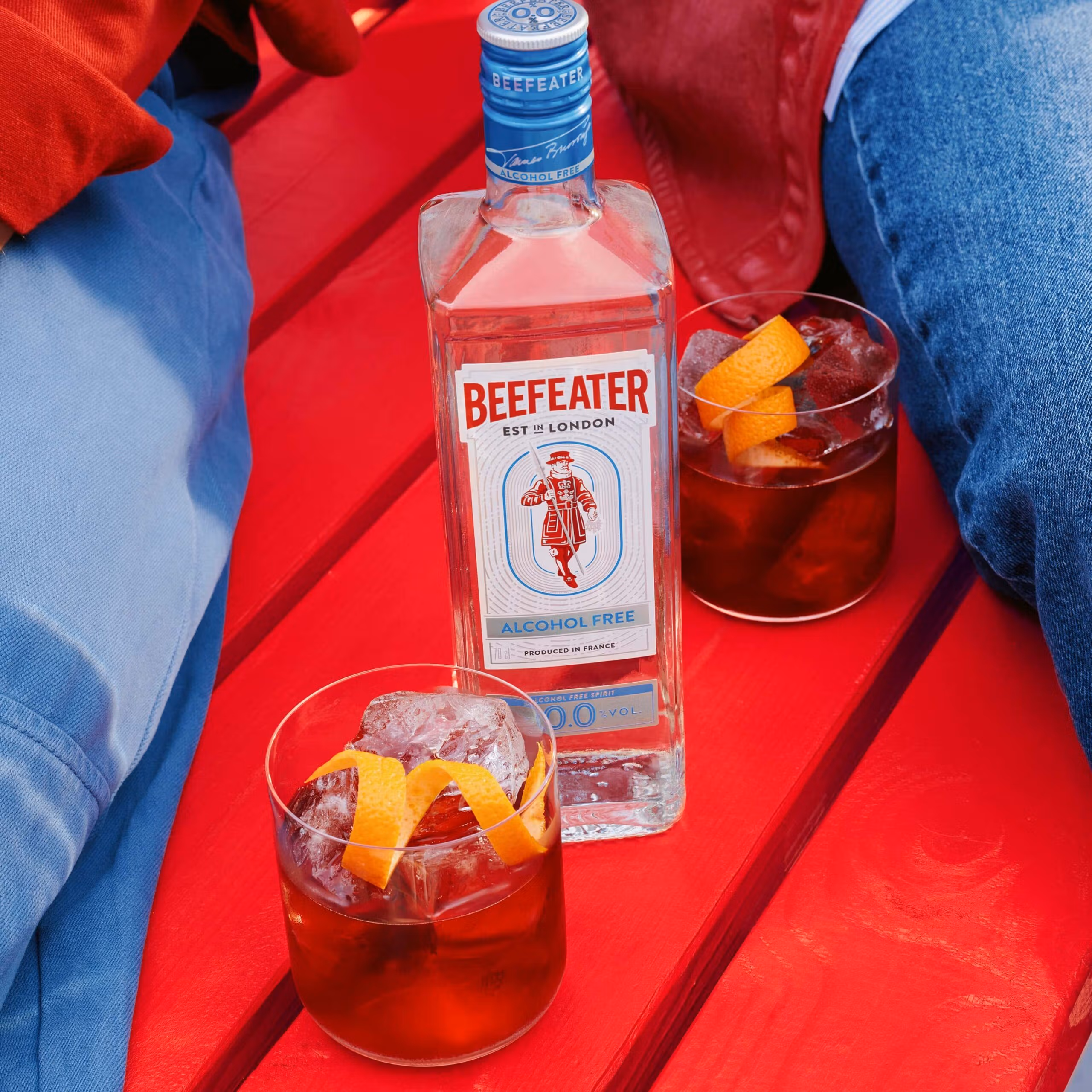 „Beefeater 0.0 – All the flavour, none of the alcohol. Der Geschmack eines echten London Dry Gins für jeden Moment.“